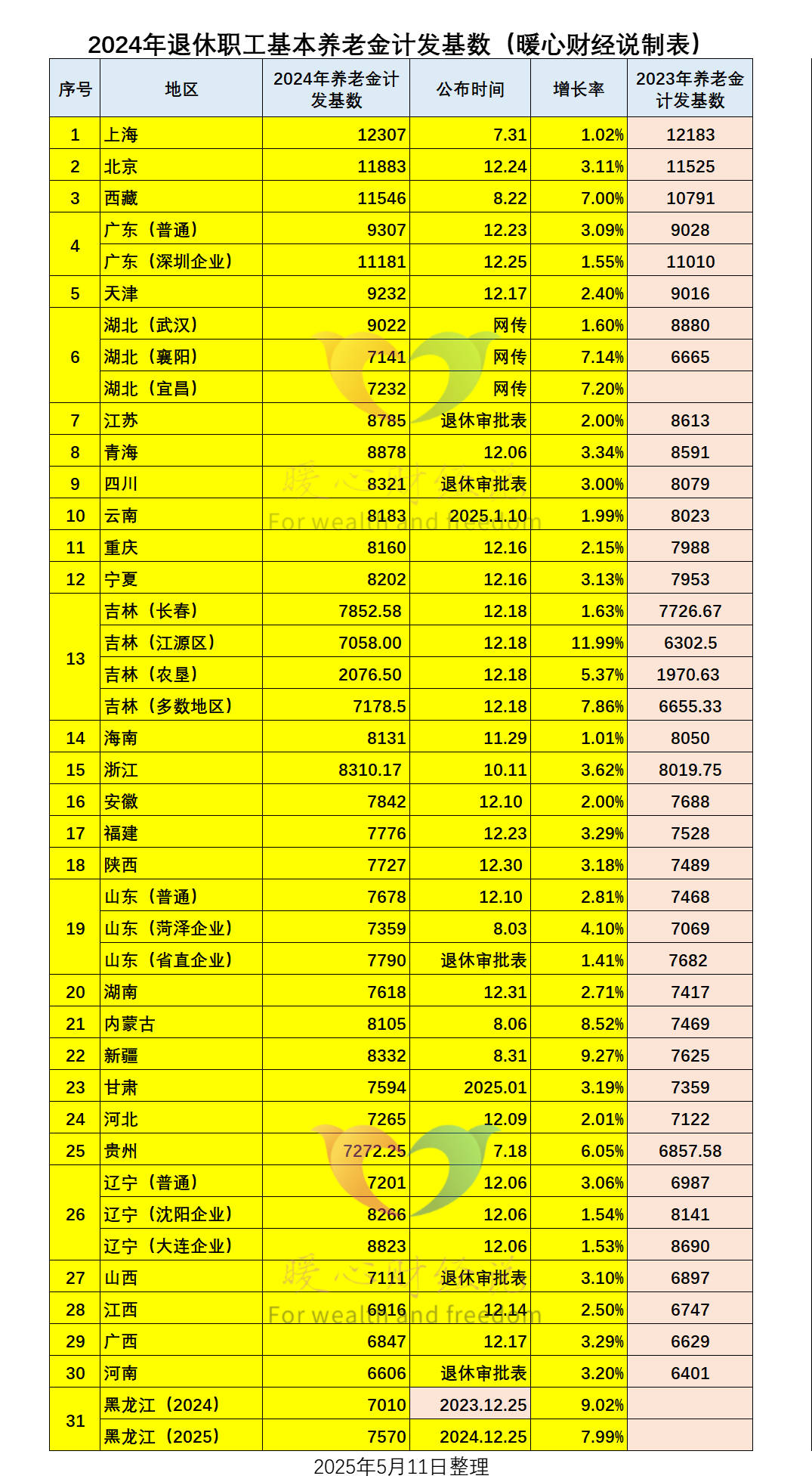 其实,退休人员的养老金计发基数,企业和机关事业单位也在一些地区有所不同。比如说目前深圳市企业计发基数是11181元,而机关事业单位是9307元。山东省省直企业的计发基数是7790元,机关事业单位则是7678元。
